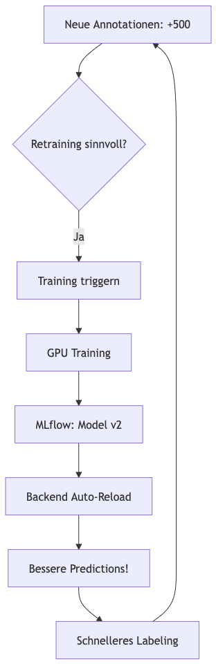 Version 1: 100 Annotations → Accuracy 75%Version 2: 500 Annotations → Accuracy 89%Version 3: 1.000 Annotations → Accuracy 94%Forgejo CI/CD: Die Trainings-Infrastruktur